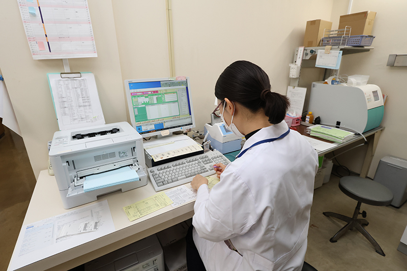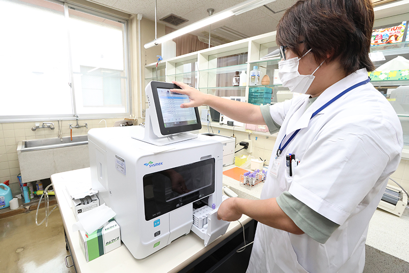 貧血の検査や白血球を測定する血液学的検査を実施し、機械で異常がある場合は鏡検して確認しています。
